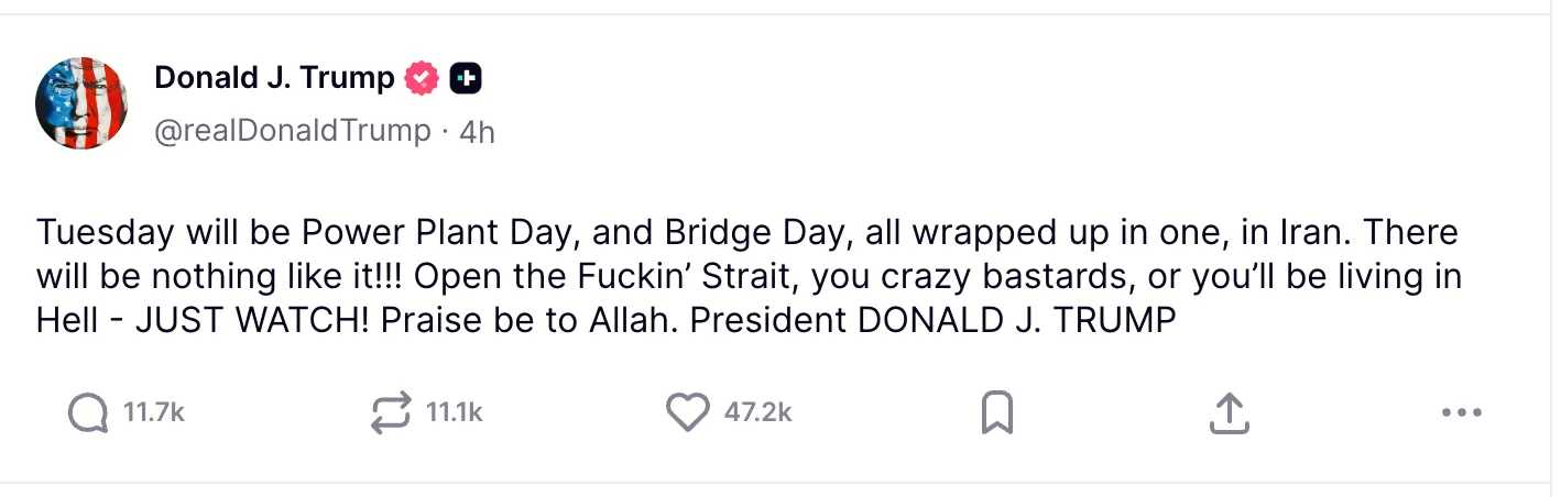 On this most sacred day of the Christian faith, a US president who claims to be a Christian issues a threat to a nation of 94 million people, including over 500,000, Christians—threatening to commit war crimes (pursuant to Geneva Convention) against their civilian infrastructure.