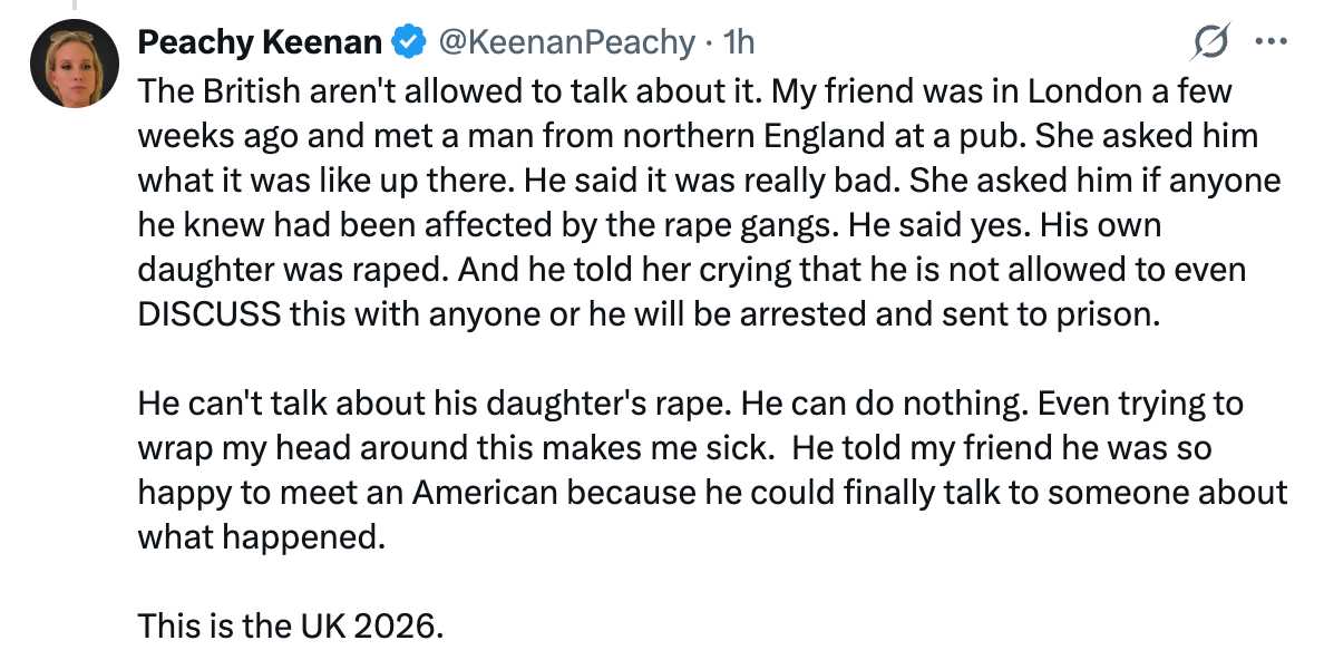 For over a decade in towns like Rotherham, Rochdale, and Telford, young native British girls—some as young as eleven—were groomed, drugged, raped, and trafficked by networks of immigrant men from East Asia. The young girls were first love-bombed with gifts and flattery, then lured into private spaces—plied with alcohol and pills—then passed between grown men who raped them repeatedly. Sometimes ...